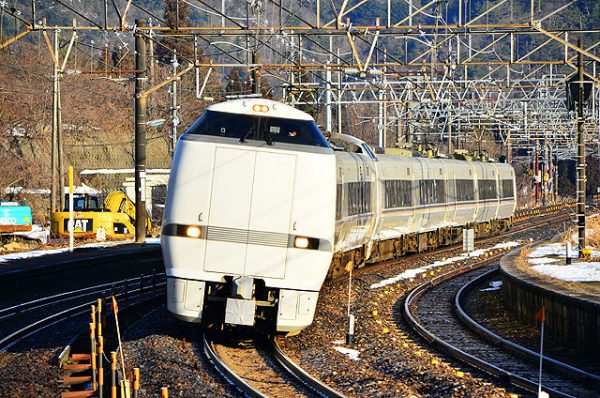 新疋田の大カーブ。言わずと知れた有名撮影地。かつては上下線の間に入り込んで撮影するファンも多かったが、現在は立ち入り禁止となっており、アウトカーブからの撮影に限られる。