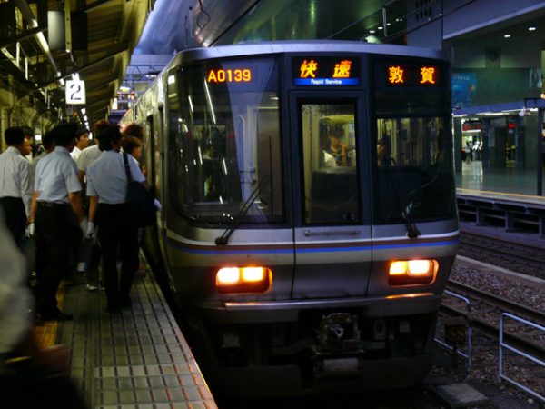 JR湖西線~快速大阪行き・快速姫路行き~ JR湖西線W6 X Facebook はてブ Pocket LINE コピー 2013.12.162022.06.29 W6 JR湖西線では朝ラッシュ時に快速が運転されている。平日は姫路行き、土休日は大阪行きで運転されている。停車駅は敦賀から近江舞子までの各駅、堅田、おごと温泉、比叡山坂本、大津京、山科、京都。 V8 また、同じパターンで大阪始発で、京都から快速に変身する敦賀行きが平日夕方ラッシュ時に1本運転されている。