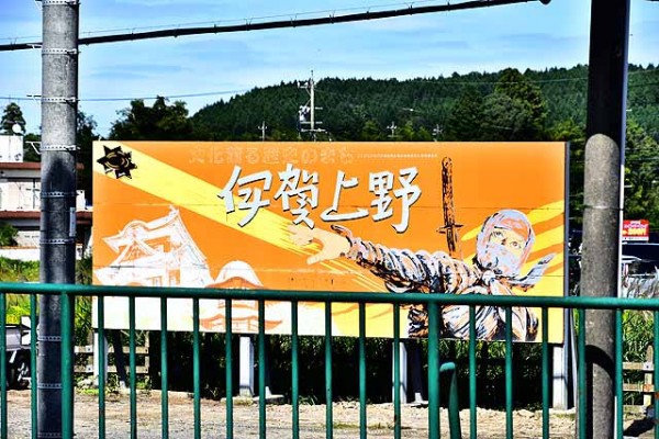 忍者の故郷の玄関口らしく伊賀上野の忍者の看板も立っている。