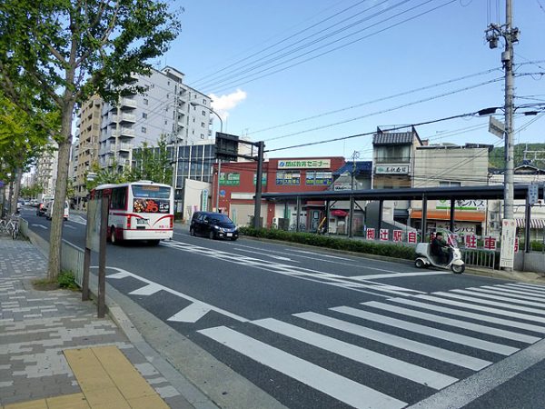 2号出口はエスカレーターが設置されている。椥辻の交差点方面へはこちらからが便利である。