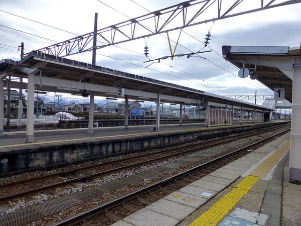 普通列車は毎時1本の運転で、朝夕には毎時2〜3本運転されている。特急は北越が2往復、はくたかが1往復停車し、平日朝に運転されるおはようエクスプレスも停車する。はくたかは下りが7時59分発の3号、上りが21時37分の24号が停車。北越は下りが17時37分と19時46分、上りが10時41分と13時02分の2往復が停車。おはようエクスプレスは7時31分に金沢行き1本のみの運転で、土休日は運休となる。