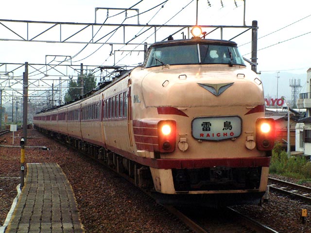 懐かしの雷鳥〜2003年9月20・21日〜 JR北陸本線485系リバイバル雷鳥 X Facebook はてブ Pocket LINE コピー 2014.01.312022.07.03 485系懐かしの雷鳥 2003年9月20日、21日に大阪~富山間で東海道線米原経由で懐かしの雷鳥が運転された。485系ボンネット車の引退の花道として用意された列車でもあった。ヘッドマークは国鉄時代の文字のみの雷鳥の表示で、初期のころの雷鳥を彷彿させる列車であった。