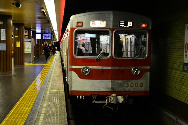 神鉄有馬線・三田線~急行三田行き~ 神鉄有馬線3004F X Facebook はてブ Pocket LINE コピー 2014.03.022022.07.05 3004F 神鉄有馬線、三田線の急行三田行きは夕方ラッシュ時に運転されている。停車駅は新開地から湊川、鈴蘭台、北鈴蘭台、山の街、谷上、大池、唐櫃台から三田までの各駅。平日ダイヤで新開地発18時14分、18時45分、19時14分の3本。土休日ダイヤは新開地発18時41分の1本のみが運転。