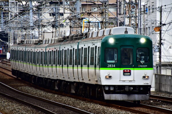 【緊急事態宣言解除により通常ダイヤに戻る京阪】 京阪本線2634F特急 X Facebook はてブ Pocket LINE コピー 2021.06.182022.07.17 2634F特急 6月21日からの緊急事態宣言解除により、5/1から長らく続いていた京阪の土休日臨時ダイヤが終了します。7連特急の出現で、自粛要請どころか、撮り鉄を誘発する事態になってしまった臨時ダイヤも来週6/26からは通常の土休日ダイヤに戻ります。土休日のプレミアムカー運用も次週から復活します。今後も緊急事態宣言時に同様なダイヤが組まれるのかは不明ですが、秋の減便ダイヤへの参考ダイヤとなるのかは注目したいところです。