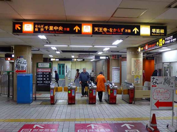 最終電車は御堂筋線天王寺方面が0時20分のなかもず行き。江坂方面が、0時07分の新大阪行きとなる。千里中央への最終は23時42分。堺筋線は天下茶屋方面が0時20分、天六方面が0時20分の正雀行きとなる。