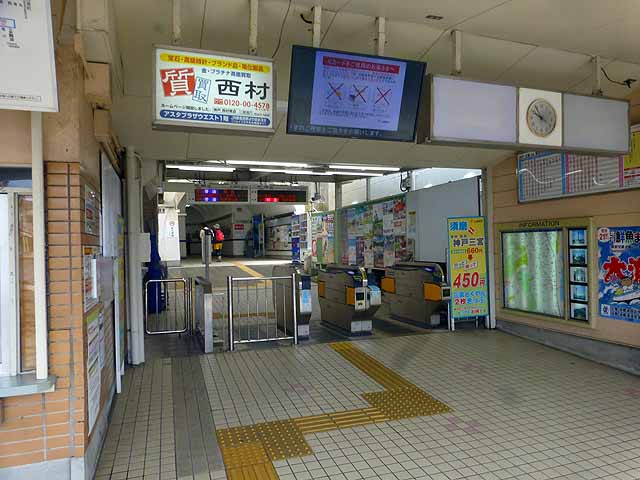 山陽電鉄本線山陽須磨駅は神戸市須磨区にある。JR神戸線須磨駅と競合しており、南へ徒歩3分ほどの距離にある。直通特急以下全ての電車が停車する駅で、昼間時は普通車の半数が当駅止まりとなっている。