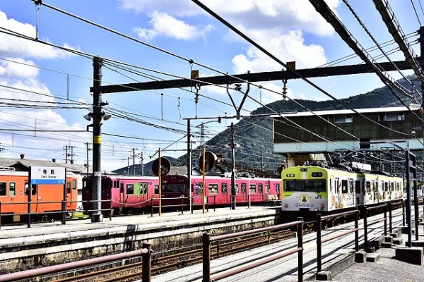 寺前駅では構内に側線があり、103系電車やキハ40系気動車が並んで休んでいる光景が見られる。