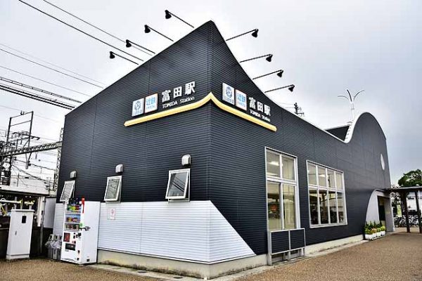 【三岐鉄道と連絡、JR富田駅とは競合する急行停車駅】