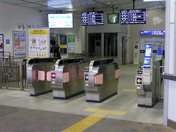 さくら夙川駅の自動改札は、桜をイメージしたピンク色のオリジナルのものが採用されている。