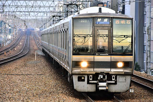 普通のみが停車する。新快速、快速と緩急接続を行う芦屋は神戸方にあるため、神戸方面への乗継ぎは良好だが、大阪方面へは普通を乗り通すことになる。朝ラッシュ時4分毎の運転、データイム以降は7~8分毎で毎時8本の運転となっている。東西線直通があるため、大阪へはデータイム以降半数が尼崎乗り換えとなる。夜間は22時以降が10分に1本程度の運転となり、最終電車は下りがJR京都線からの直通がさくら夙川発0時46分の西明石行きで、大阪発時刻は0時28分となっている。上りはさくら夙川発0時51分の大阪行きで、三ノ宮発時刻は0時34分となっている。