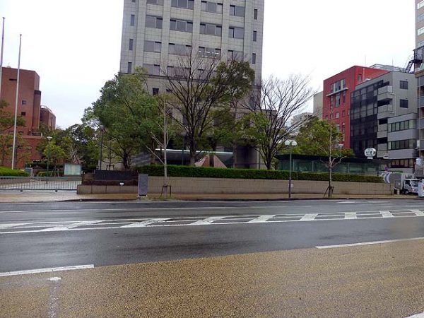 東出口1は兵庫県公館の近くにある。神戸栄光教会にも近い。