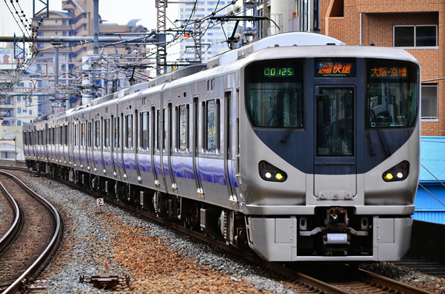 225系5000番台は、2010年12月に登場した阪和線、紀勢線用の近郊型電車。223系0番台、2500番台に準じて車内は1-2配列の転換クロスシートになっており、223系との併結運転を行うため全てが4両編成で製造された。最高速度も223系0番台、2500番台と同じ120km/hとなっている。125系や321系で採用された0.5M方式を踏襲しており、全車電動車両となった。主電動機は定格270KWと大出力となっており、制御装置にはIGBT素子による2レベル電圧PWMインバータを採用しており、1c2M制御となっている。2010年から2012年の3年間に4両編成29本が製造され、阪和線の113系、221系、103系を置き換えた。225系5000番台投入により、快速は全て223系と225系に統一された。2022年10月現在、4両編成29本全てが吹田総合車両所日根野支所に配属されている。