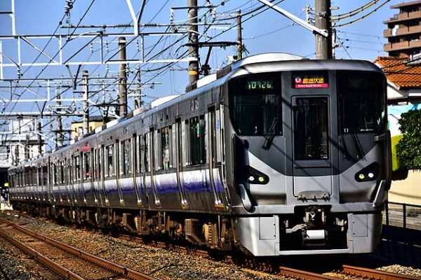225系5000番台は、2010年12月に登場した阪和線、紀勢線用の近郊型電車。223系0番台、2500番台に準じて車内は1-2配列の転換クロスシートになっており、223系との併結運転を行うため全てが4両編成で製造された。最高速度も223系0番台、2500番台と同じ120km/hとなっている。125系や321系で採用された0.5M方式を踏襲しており、全車電動車両となった。主電動機は定格270KWと大出力となっており、制御装置にはIGBT素子による2レベル電圧PWMインバータを採用しており、1c2M制御となっている。2010年から2012年の3年間に4両編成29本が製造され、阪和線の113系、221系、103系を置き換えた。225系5000番台投入により、快速は全て223系と225系に統一された。2022年10月現在、4両編成29本全てが吹田総合車両所日根野支所に配属されている。