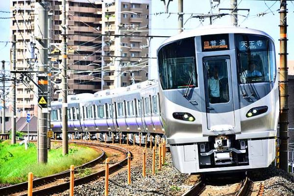 225系5100番台は、2016年3月から投入されている225系5000番台の増備車で、阪和線、紀勢線に投入された近郊電車である。225系5000番台と同じく3扉転換クロスシート車となっており、1-2配列のクロスシートも踏襲している。フロントマスクは5000番台とは異なり、227系等に準じた丸みを帯びたものとなっている。5000番台と同様に、223系0番台、2500番台とも併結運転を行うため、最高速度は120㎞/hとなっている。近年のJR西日本の新型車両の標準となっている0.5M方式を採用している。全車電動車で、4両編成、6両編成がそれぞれ製造された。4両編成は併結運転に備えて、転落防止幌が標準で装備されている。6両編成は固定運用のため、先頭車が中間に入ることはないため、転落防止幌は装備されていない。JR西日本の車両としては初めて公衆無線LANのサービスを提供している。4両編成14本、6両編成11本が製造され、4両編成は関空紀州路快速を中心に、快速、区間快速、普通に広く運用されている。6両編成は普通の運用が標準でラッシュ時には区間快速にも運用されている。2022年10月現在、4両編成14本、6両編成11本が吹田総合車両所日根野支所に配属されている。