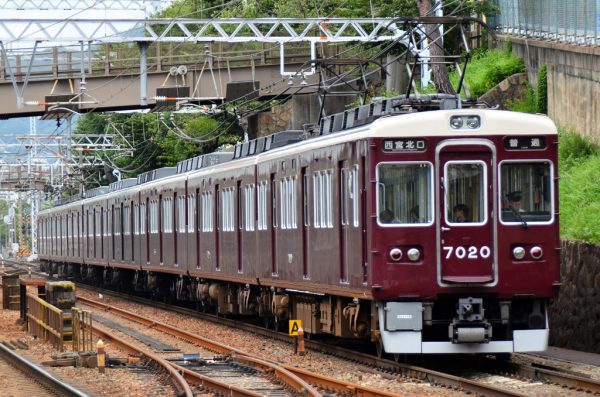 阪急7000系は6000系をベースに1980年から1988年までに210両が製造された。現在、阪急での同一系列の製造数が最も多い形式である。阪急神戸本線、今津線、伊丹線、宝塚本線、箕面線と神戸高速線で運用されている。1998年以前は山陽電気鉄道本線の須磨浦公園まで乗り入れていた。