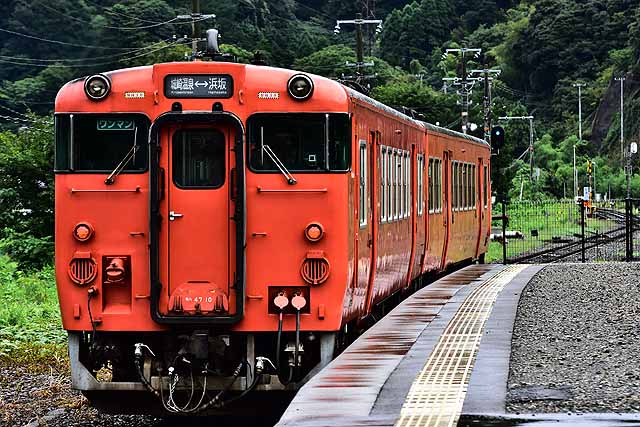 | 普通 | 豊岡 | 7:38 | 浜坂 | 8:56 | 鳥取 | 9:58 | 1時間18分 | 49.5km | 38.1km/h | 快速→普通、鳥取→浜坂 | ||