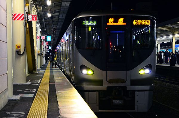 JR紀勢本線快速紀伊田辺行き JRきのくに線HF419 X Facebook はてブ Pocket LINE コピー 2016.03.142022.07.13 HF419 JR紀勢本線(きのくに線)では夕方ラッシュ時に快速紀伊田辺行きを運転している。223系もしくは225系4両編成で運転され、平日ダイヤの和歌山発18時44分に1本のみが設定されている。停車駅は和歌山から紀三井寺、黒江、海南、加茂郷、箕島、藤並、湯浅、紀伊由良、御坊から紀伊田辺までの各駅となっている。