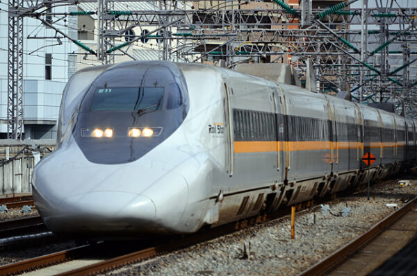 JR西日本700系7000番台は、700系0番台をベースに2000年3月11日ダイヤ改正で新設された山陽新幹線新大阪~博多間のひかりレールスター専用の車両として投入された。基本性能は700系に準じており、外観は700系とは一線を画してグレー地にフロント部や側窓廻りにダークグレーを入れ、窓下にはサニーイエローのラインが入ったオリジナル塗装となった。先頭部側面にはRailStarのロゴマークが入れられている。