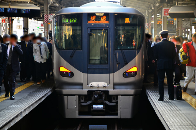 JR阪和線〜快速鳳行き〜 JR阪和線HF417 X Facebook はてブ Pocket LINE コピー 2014.04.232022.07.06 HF417 JR阪和線では平日朝ラッシュ時、土休日ダイヤ夜間に快速鳳行きを運転している。平日ダイヤ朝ラッシュ時には天王寺発6時39分、6時55分、7時20分、7時45分、8時28分の5本が運転。土休日ダイヤは天王寺発20時43分、21時04分の2本が運転されている。 快速鳳