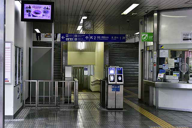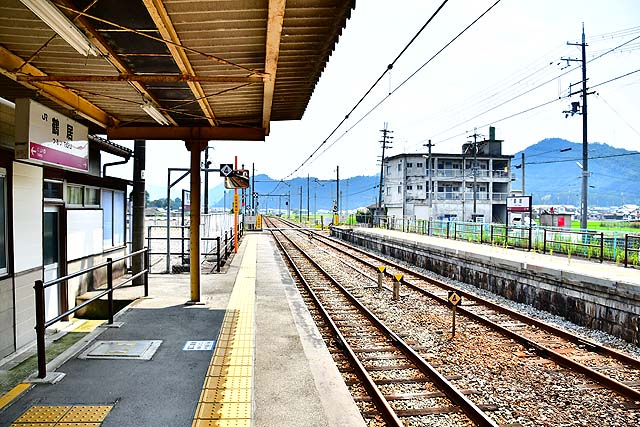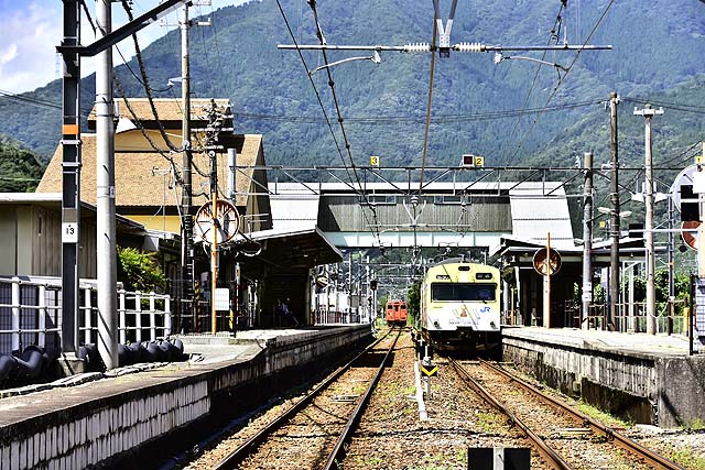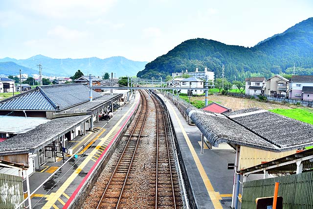 寺前を出るとローカル色が濃くなっていき、さらに市川沿いに北上していく。延々と北上していき、1面2線の長谷となる。ここもまだ大河内町内にある。長谷を出ると右に左にカーブして山間を進んでいく。生野町に入り、播但連絡道路が頭の上を通り越し、右手に生野工業団地が見えて、左にカーブして町が見えてくると2面2線の生野となる。生野銀山で有名なところだが、今はちょっとした工業の町となっている。駅の目の前に播但道の生野ICがあり、クルマが便利なところを見せつけられる。生野から先は播但道、国道312号線としばらく並行して進み、朝来町に入る。この辺りからは日本海に注ぐ円山川沿いに、播但道、国道312号線と並行して走る。山間部から少し抜け出て小さな集落が見えてくると2面2線の新井である。ここは朝来町の中心駅であるが、ここも播但道が便利で、町からは少し離れているが、朝来ICがあり姫路方面へはクルマの利用が便利である。さらに円山川に沿って進み、1面1線の青倉を過ぎると左手に播但道の和田山PAを見ながら和田山町に入る。次の竹田は2面2線で左手に竹田城跡が見え、東側には和田山病院や和田山看護学校がある。播但道がオーバークロスして、その和田山ICを見ながらさらに円山川沿いに北上し、右手に和田山高校が見えて、円山川と与布上川が合流するところで国道9号線と交差して左にカーブして、右手から山陰線が近づいてくると終点の和田山である。和田山は山陰線との接続駅で、播但線から山陰線へは豊岡方がスルーする構造になっている。2面4線の構造で播但線は1番線から発着している。
