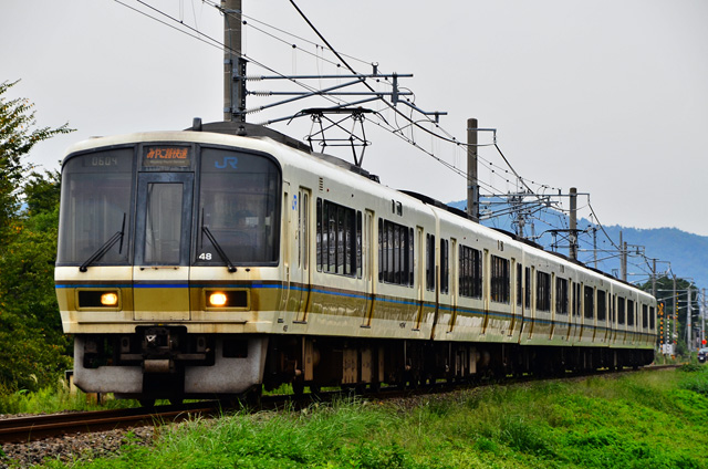 普通は京都〜奈良間と京都〜城陽間の運転で、それぞれ30分毎の運転。毎時4本の運転だが、15分の等間隔にはなっていない。奈良行きは宇治でみやこ路快速と緩急接続する。使用車両は103系4両編成が基本で、一部列車は221系が使用される。今後は老朽化著しい103系の置き換えが課題となる。環状線への新車投入で余る201系で急場を凌ぐことも考えられるが、225系を本線に投入して、リニューアル改造された221系を持ってくる方が現実的かもしれない。