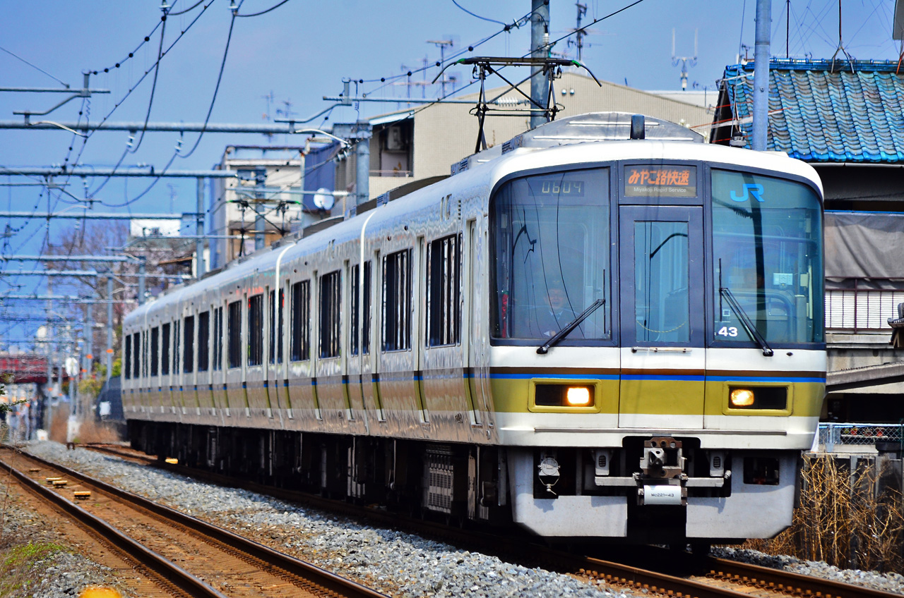 みやこ路快速は京都〜奈良間に30分毎の運転で、宇治で普通と緩急接続する。停車駅は京都から東福寺、六地蔵、宇治、城陽、玉水、木津、奈良。使用車両は221系で4両編成または6両編成で運転されている。京都〜奈良間の所要時間は下り44分、上り47分。上りは下りみやこ路快速との行き違いのため、棚倉に運転停車するため、所要時間が延びている。