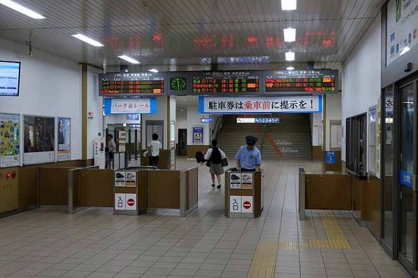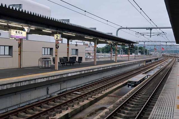 豊岡を出ると京都丹後鉄道宮津線が右にカーブして分かれて行く。豊岡の市街地をすぐに抜け出し、再び右手から円山川が近づいてきて、それに沿って走るようになる。玄武洞はホーム2面2線で、観光地の一つ玄武洞への最寄駅となるが、玄武洞は円山川の対岸にあるため、駅から徒歩ではアクセスするのは難しい。利用者が少ないため、近年は普通列車が通過することもあり、識別のため快速の種別になっている。流量が豊富な円山川に沿って走るこのあたりは長閑な感じがするいい景色である。左手に城崎の町が見えてくるとホーム3面4線の城崎温泉となる。同駅は円山川に沿った狭い所にあり、温泉街が駅の西側に広がっている。ここまでが電化区間のため特急こうのとりやきのさきは同駅で折り返す。ローカル電車は豊岡で折り返す電車が多いが、城崎温泉折り返しも少なくない。浜坂方面からの気動車も同駅で折り返す列車があり、列車本数はそれほど多くないが、結構賑やかである。駅前には足湯や駅前温泉もあり、列車待ちの間に湯を楽しむこともできる。