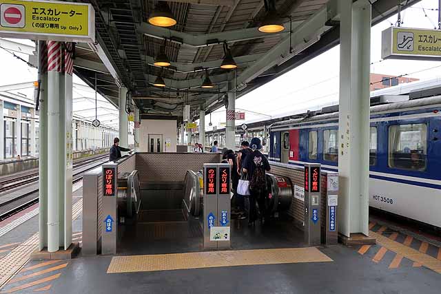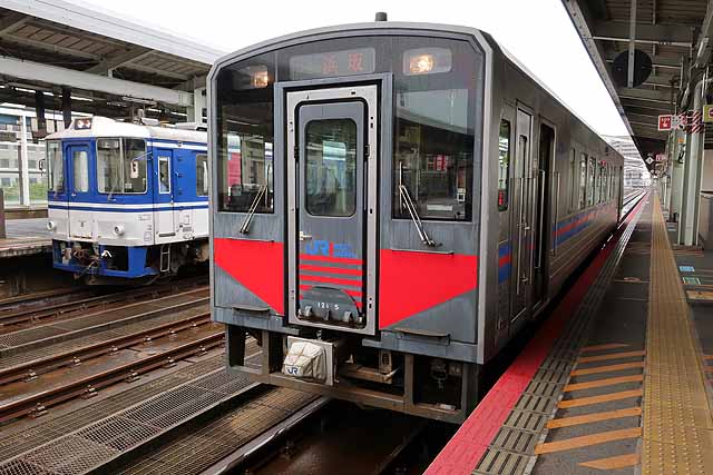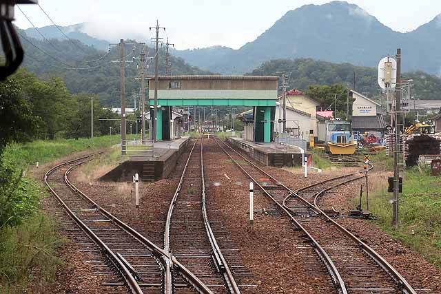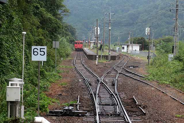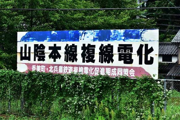 香住を出ると矢田川を渡って国道178号線と交差して虫尾トンネルに入る。短いトンネルをいくつか抜けて、少し長い仕立トンネルを抜けて鎧となる。鎧はトンネルとトンネルの間に挟まれた山間の小駅で、ホーム2面2線だったが、現在は棒線化されて1面1線となっている。鎧を出るとすぐにトンネルに入り、於伊呂トンネルを抜けて名所として名高い餘部鉄橋を渡る。コンクリート橋に建て替えられ以前ほどの人気はなくなったが、かつての鉄橋は今でも鉄道ファンを中心に人気がある。鉄橋を渡り終えるとホーム1面1線の餘部となる。同駅は列車の撮影に訪れる人が多かったが、橋がコンクリート橋に架け替わり、鉄道ファンが好む撮影対象だった国鉄形の置き換えも進み、以前ほど撮影者は訪れなくなっている。その代わりにかつての鉄橋の一部が保存されて、空の駅として観光客を呼び込もうとしている。道の駅とのリンクが主な役割になっており、鉄道利用者増にはなかなか結び付かないのが残念なところだ。餘部を出ると内陸部を走るようになる。桃観トンネルを抜けて美方郡新温泉町に入り、すぐに久谷となる。ホーム2面2線だったが、棒線化されて1面1線となっている。久斗川を渡って続いて岸田川を渡って浜坂の町の中心部に入り、特急停車駅の浜坂となる。浜坂には温泉があり、冬場にはカニがあるので、カニかにはまかぜ号などの臨時列車が運転され、普段は寂れた印象のある山陰線も少し賑わう。
