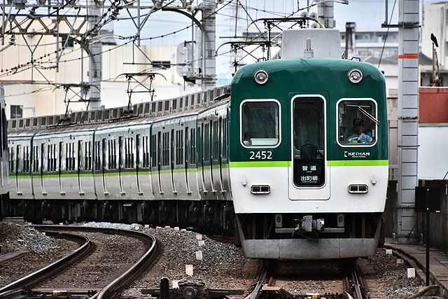 京阪2400系は1969年に登場した通勤型車両。関西私鉄では初めての冷房車として新製された。性能的には2200系をベースとしており、主電動機155KWでの抵抗制御車で、後に回生ブレーキ付き1C8Mの界磁添加励磁制御に改造された。