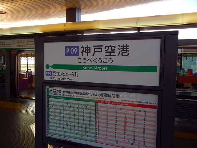 同駅を出ると右にカーブして神戸スカイブリッジを渡り、ポートアイランドから神戸空港の人口島へと渡る。右手に海上アクセスターミナルを見て、空港島に入り、右にカーブして左手に神戸空港の滑走路が見えると終点の神戸空港となる。1面2線の構造で駅手前には渡り線がある。神戸空港は不振が伝えられているが、ポートライナーの神戸空港輸送はそれなりに成り立っており、乗車人員は一日3,044人となっている。