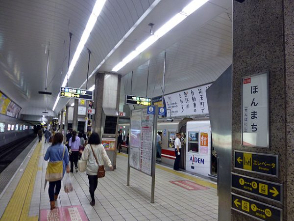 淀屋橋を出ると大阪屈指のビジネス街の下を走り、中央大通りとの交点に本町がある。本町も1面2線で中央線、四つ橋線と連絡している。とはいえ、御堂筋線の本町駅は、中央大通りよりも北側にあり、本町通付近が中心となっているため、中央線との乗り換えには少し歩かなければならない。中央線へ乗り換えるには中百舌鳥方の車両に乗った方がよい。