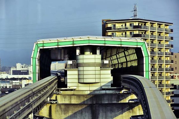 南摂津を出ると淀川を渡る。このあたりの中央環状もよく渋滞しているが、モノレールは常に遅い速度で走っている。淀川を渡り終えて右手にかすかに谷町線の大日車庫を見ながら大日となる。大日では大阪市交谷町線と連絡しているが利用者は多くないし、高架のモノレールと地下の谷町線では乗り換えも便利ではない。大日を出て松下電器の工場群を見ながら京阪本線をアンダーパスしてすぐのところに終点の門真市がある。門真市では当然京阪本線と連絡しているが、乗り換えは南茨木と同じように便利でも不便でもない感じである。線路は門真市より先まで延びており、電車は一旦引き上げて折り返している。今後門真市から東大阪市の瓜生堂までの延伸が計画されており、延伸時には引き上げ線が本線となる見込みである。