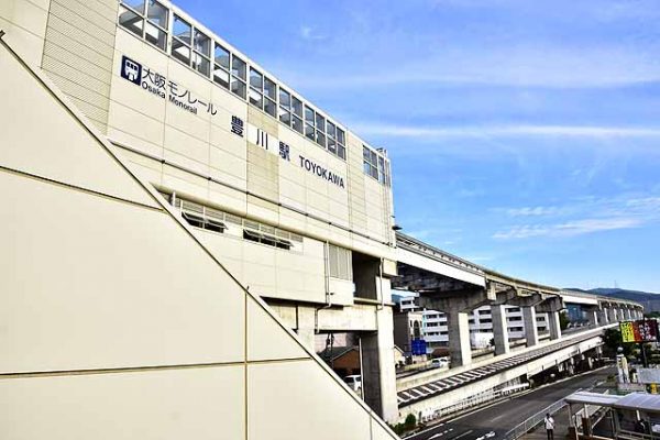 阪大病院前を出ると左にカーブして、右手に茨木カンツリー倶楽部のゴルフ場の森を見ながら丘陵地を下っていく。丘陵地から下りて国道171号線との交点の手前に1面2線の豊川がある。駅は茨木市にあるが、西側は箕面市の小野原地区になっている。駅の茨木市側の北方1kmほどのところに梅花女子大の短大部や摂稜高校、中学がある。これらの学校は従来阪急茨木市やJR茨木から出るバスに乗っての通学が主流だったが、駅から少し遠いが、大阪市内からの通学ならモノレールを利用するルートも出来たことになる。豊川を出てすぐに国道171号線を跨いで北上を続ける。少し回り込むように勾配を上がっていき、まだまだ開発途上の様相を見せる彩都の街並みが見えてくる。豊川~彩都西間の駅間距離は2.4kmもある。